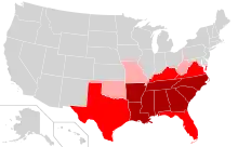 Como una clara ubicación geográfica dentro de los Estados Unidos, "Dixie" se define generalmente a los once estados del Sur que se separaron a finales de 1860 y a principios de 1861 para formar los Estados Confederados de América. Estos son (en orden de secesión): Carolina del Sur, Misisipi, Florida, Alabama, Georgia, Luisiana, Texas, Virginia, Arkansas, Carolina del Norte y Tennessee. Maryland nunca se separó de la Unión, pero a muchos de sus ciudadanos favorecieron la Confederación. Mientras que muchos de los representantes de Maryland fueron arrestados[7] para evitar la secesión,[8] tanto en los estados de Misuri y Kentucky producidendo Ordenanzas de la Secesión y fueron admitidos en la Confederación.[9] Virginia Occidental , fue parte de Virginia hasta 1863; los condados que decidieron no separarse de la Unión se convirtió en parte del Oeste de Virginia.