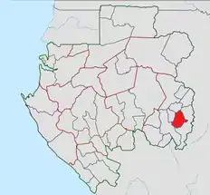 Se encuentra ubicado al este del país, en el entorno de las mesetas Batéké y del río Mpassa, cerca de la frontera con la República del Congo.[2]
