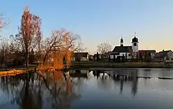 Se encuentra ubicada al suroeste de la región y de Praga, cerca del río Litavka —un afluente derecho del río Berounka que, a su vez, es afluente izquierdo del Moldava— y de la frontera con las regiones de Pilsen y Bohemia Meridional.[1]