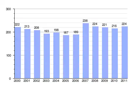 Gráfica de evolución demográfica de Doña María entre 2000 y 2011 |