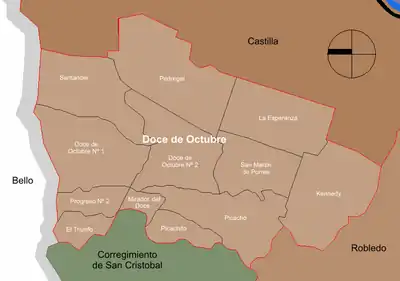 ![]() Ubicación de Doce de Octubre en Medellín. | ||