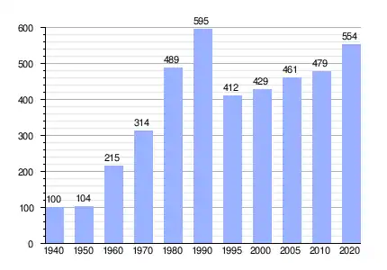 Población de los censos y conteos del Instituto Nacional de Estadística y Geografía (INEGI).[6] |