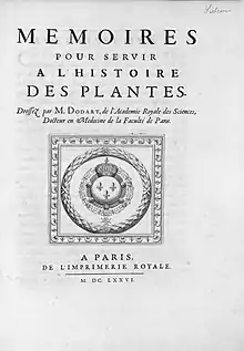 • Mémoires pour servir a I'histoire des plantes. Paris, 1676