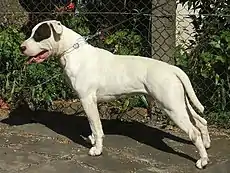 Dogo brasileño (en portugués: Dogue brasileiro) es una raza de perros creada en Brasil específicamente para la función de perro guardián.[2] Surgió en el fin de la década de 1970 a partir del cruzamento entre Bull terrier inglés y Bóxer. Inicialmente nombrada como bull boxer (bull terrier + boxer), su creador, Pedro Ribeiro Dantas, dio nuevo nombre a la raza para explicitar que se trata de un descendiente de molosso (Dogo) y su nacionalidad es brasileña.[2]