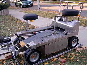 - Dolly ligero con asiento desplazándose sobre un raíl flexible