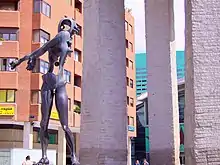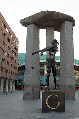 ![]() Conjunto escultórico con el Palacio de los Deportes al fondo. | ||