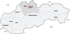 Se encuentra ubicada en el centro de la región, cerca del curso alto del río Váh (cuenca hidrográfica del Danubio) y de la frontera con la República Checa y Polonia.[1]