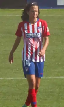 El 1 de julio de 2018 el Atlético de Madrid hizo oficial su fichaje, destacando su fuerza y velocidad, y su gran experiencia internacional.[18] Debutó con las colchoneras el 13 de septiembre de 2018 en dieciseisavos de final de la Liga de Campeones en el empate a un gol ante el Manchester City al sustituir a Ángela Sosa en el minuto 73.[19] Con el Atlético ha sido habitual en los partidos, normalmente saliendo desde el banquillo. Su mejor partido fue ante el Rayo Vallecano, en el que asistió desde la banda izquierda a Esther González y Kenti Robles para hacer el 0-2 y 0-3 respectivamente.[20] El 5 de mayo de 2019 logró su primer título de Liga española, en el que contribuyó jugando 20 partidos.[21] Disputó como suplente la final de la Copa de la Reina, torneo, en el que el Atlético cayó ante la Real Sociedad.[22] El 24 de julio de 2019 se hizo público su acuerdo para rescindir su contrato con el Atlético de Madrid.[23]