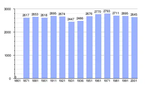 Gráfica de evolución demográfica de Domegge di Cadore entre 1861 y 2001 |