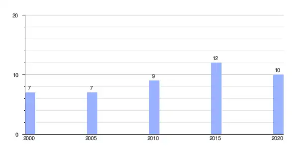 Gráfica de evolución demográfica de Domiz entre 2000 y 2020 |