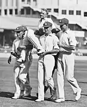 En 1930-31, contra el primer equipo de cricket de las Indias Occidentales que visitó Australia, la puntuación de Bradman fue más moderada que en Inglaterra, aunque hizo 223 en 297 minutos en la tercera prueba en Brisbane y 152 en 154 minutos en la siguiente prueba en Melbourne. [30] Sin embargo, anotó rápidamente en una secuencia de entradas muy exitosa contra el equipo nacional de cricket de Sudáfrica en el verano australiano de 1931-32. Con la selección de Nueva Gales del Sur contra los turistas, hizo 30, 135 y 219. En los partidos de prueba, anotó 226 (277 minutos), 112 (155 minutos), 2 y 167 (183 minutos); sus 299 no out en la cuarta prueba, en Adelaida, establecieron un nuevo récord de puntuación en una prueba en Australia.[31][32] Australia ganó nueve de los diez tests jugados en las dos series.