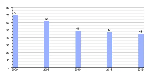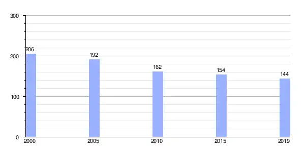 Gráfica de evolución demográfica de Donalbay (parroquia) entre 2000 y 2019 |
