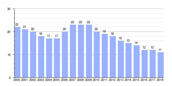 Gráfica de evolución demográfica de Donas entre 2000 y 2018 |
