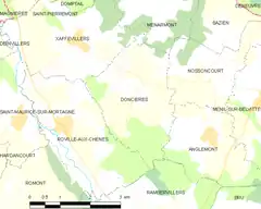 El pueblo se encuentra en el castillo de Rambervilles, en el ducado de Lorena.En 1790, Doncières pasó por el distrito de Rambervilles, cantón de Nossoncourt. La parroquia dependía del obispado de Toul, luego el de Saint-Dié.
