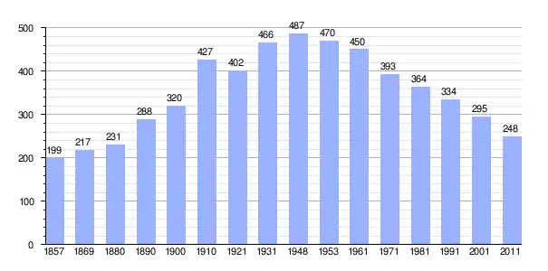 Gráfica de población de Donji Lipovac 1857-2011 |