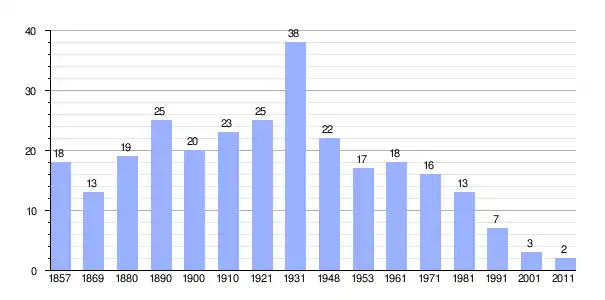 Según los censos de población de la oficina estadística de Croacia.[5] |