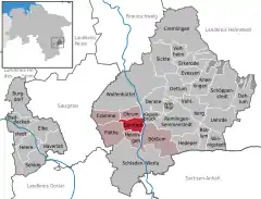 Se encuentra ubicado al sureste del estado, a poca distancia de la frontera con el estado de Sajonia-Anhalt.