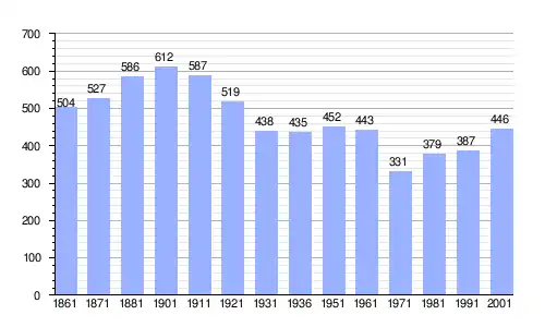 Gráfica de evolución demográfica de Dorzano entre 1861 y 2001 |