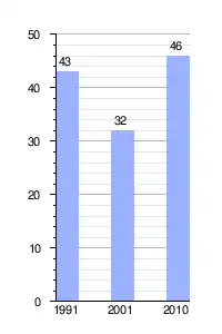 Gráfica de evolución demográfica de Dos Arroyos entre 1991 y 2010 |