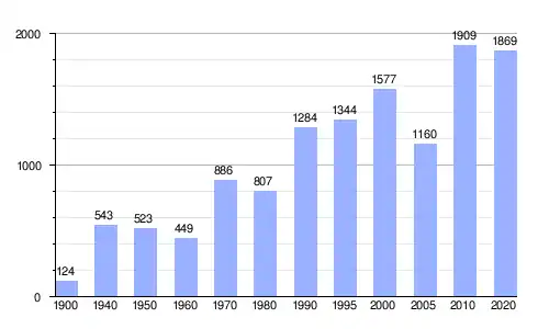 Gráfica de evolución demográfica de Dos Montes entre 1900 y 2020 |
