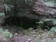 La entrada a la Cueva de río Murciélagos se encuentra a 75 metros al noroeste del Palacio de los Murciélagos.[49] Aunque es relativamente seco en la estación seca, cuando llueve el agua puede derramar por la entrada de la cueva a una velocidad de 8m³/segundo, haciendo el ruido suficiente como para ser escuchada en la plaza principal a una distancia de 500 metros.[50] Aunque el flujo estacional de agua ha arrasado casi todos los restos arqueológicos de la cueva, los arqueólogos estiman que la Cueva de los Murciélagos tuvo una importancia ceremonial para los habitantes de Dos Pilas por su espectacular torrente durante la temporada de lluvia.[50] Una investigación de las diferentes cuevas de Dos Pilas reveló que todas las cuevas mayores formaban parte del mismo sistema de drenaje, y que la Cueva de los Murciélagos es la salida de drenaje para todo el sistema; por lo tanto, esta cueva se conecta a la Cueva de Río El Duende. Una salida de la Cueva de los Murciélagos fue encontrada dentro del Palacio de los Murciélagos, donde fue marcada por un altar.[50]