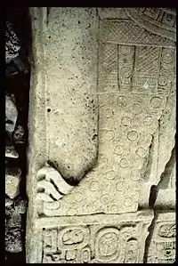 - L4-35 es una estructura situada en el lado oeste de la plaza. En su base se encuentra la Escalinata glífica 1, en la que se registraron los eventos en la vida de Itzamnaaj K'awiil.[41]