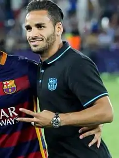 El 26 de agosto de 2014 el F. C. Barcelona anunció la incorporación del jugador hasta 2019 a cambio de 4 millones de euros más otros 1,5 millones en concepto de variables. Fue presentado en el Camp Nou el 29 de agosto.[8] Debutó el 24 de septiembre en un partido ante el Málaga C. F. perteneciente a la quinta jornada de la campaña 2014-15 que finalizó 0-0 y en el que jugó 73 minutos.[9] Sin embargo, con el paso del tiempo apenas tuvo participación y fue dejado habitualmente fuera de las convocatorias por Luis Enrique. En los cinco partidos que disputó sólo cabe destacar una asistencia a Adriano Correia en la victoria por 4-0 ante el Elche C. F., en los octavos de final de la Copa del Rey.[10] Durante la siguiente temporada participó únicamente en tres partidos.