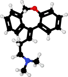 Doxepin es un antidepresivo tricíclico comercializado en todo el mundo.[4] Los nombres de marca de formulaciones orales incluyen Deptran y Sinequan, y nombres de marca de cremas tópicas, cuyas formulaciones incluyen Prudoxin.