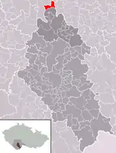 Se encuentra ubicada en el centro-sur de la región, en la zona de la selva de Bohemia, a poca distancia al sur de la ciudad de Praga, de la orilla del río Moldava —el más largo del país, afluente del río Elba— y al norte de la frontera con Austria.[1]