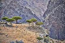 ![]() Dracaena cinnabari en la meseta de Dixsam. | ||