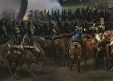 ![]() Les grenadiers à cheval à la bataille d'Eylau : Haut les têtes (le colonel Lepic), 1893. Pintura de Édouard Detaille | ||