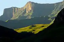 Los montes Drakensberg ("Montañas del Dragón" en afrikáans) son las montañas más altas del sur de África, elevándose en el Thabana Ntlenyana hasta los 3482 m de altura. En isiZulu, el idioma de los zulúes, se llaman uKhahlamba, la "barrera de las lanzas". En Lesoto se les conoce como Maloti.[1]