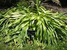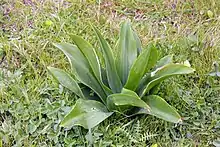 El tallo, robusto y erecto, tiene 45-150 cm de alto y 3-15 mm de diámetro hacia la base. Las hojas, de 20-60 por 2-10 cm, aparecen en otoño después de la floración y se secan al llegar el verano; son erectas o erecto-patentes, lanceoladas, u oblongo-lanceoladas, agudas y más o menos acanaladas en el ápice, con sección muy estrechamente elíptica o casi linear, planas, con margen también plano y liso.