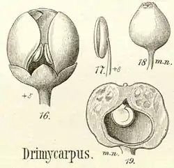 ![]() Drimycarpus racemosus en Augustin Pyrame de Candolle, Monographiæ phanerogamarum, vol. 4: t. 15, 1883 | ||