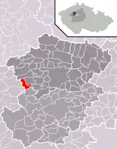Se encuentra ubicada al noroeste de la región y de Praga, a poca distancia al norte del río Berounka —un afluente izquierdo del río Moldava—, y cerca de la frontera con la región de Ústí nad Labem.[1]