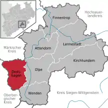 Se encuentra ubicado en la zona centro-sur del estado, en la región de Arnsberg, en el territorio montañoso de Sauerland, cerca de la frontera con el estado de Renania-Palatinado.
