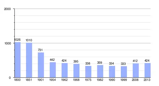 Gráfica de evolución demográfica de Droyes entre 1800 y 2013 |