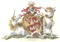 - 1.º y 4.º, en una pila de gules entre seis flores de lis azur tres leones de Inglaterra (siendo el aumento de honor otorgado por el rey Enrique VIII en su matrimonio con Jane Seymour);