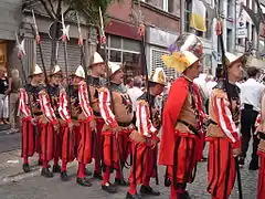 Es difícil imaginar el orden del cortejo en esa época. No hay documentos sobre este tema antes del siglo XVIII. Había escenas del Antiguo y Nuevo Testamento, por ejemplo: el grupo de profetas armados con la vara blanca o roja y la historia de Daniel, la Natividad y la Pasión de Cristo, la Anunciación, la Presentación de Jesús en el Templo, la Historia de María Magdalena, etc. También se hicieron desfilar a los arqueros, arcabuceros y bombarderos-culebrinos, que más tarde se convertirían en los cañoneros-arcabuceros.[11]