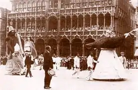 - El águila y Sansón en la Grand Place de Bruselas con motivo de la Exposición Universal de 1935.