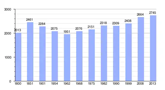 Los datos entre 1800 y 2013 son el resultado de sumar los parciales de las dos comunas que forman la nueva comuna de Ducey-les-Chéris, cuyos datos se han cogido de 1800 a 1999, para las comunas de Ducey[4] y Les Chéris[5] de la página francesa EHESS/Cassini. Los demás datos se han cogido de la página del INSEE.[6]