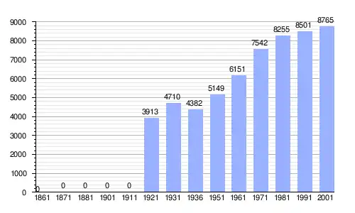 Gráfica de evolución demográfica de Duino-Aurisina entre 1861 y 2001 |