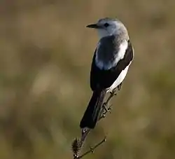 Posiblemente el ave emblemática de los cordones medanosos bonaerenses sea la monjita dominicana (Xolmis dominicanus), un pájaro de atractivo colorido el que hace un siglo era abundante y pasó a ser muy raro, desapareciendo en casi toda su distribución austral, manteniendo en los médanos situados entre Mar Chiquita y el partido de Villa Gesell las últimas poblaciones de la provincia y las más australes del mundo.[52]