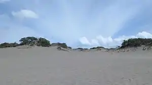 En esta zona aparecen algunas áreas llanas ("vallecitos") formadas por sedimentos de playa que reciben el nombre de "salados" y que, en algunos casos, son invadidos temporalmente por aguas marinas, como es el caso de El Salado del Muerto. En las dunas también se destaca el sendero de los caracoles, una reserva de fósiles prehistóricos y de valor arqueológico y manantiales de agua dulce bajo la arena que desaparecen en tiempos de sequía.[1]