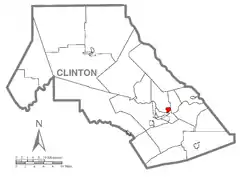 ![]() Ubicación en el condado de Clinton ![]() Ubicación del condado en Pensilvania ![]() Ubicación de Pensilvania en EE. UU. | ||