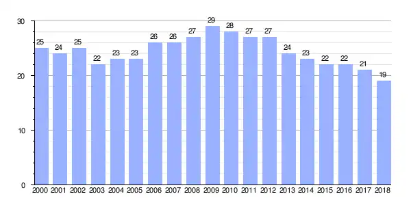 Gráfica de evolución demográfica de Duomes de Abaixo entre 2000 y 2018 |