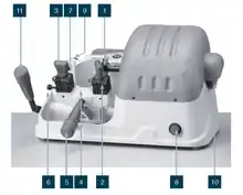 - Manilla del carro: dispositivo para manejar la precisión del carro.