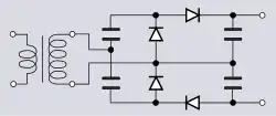 Un duplicador de tensión es un circuito electrónico que carga condensadores con una tensión de entrada y alterna dichas cargas de modo que, en el caso ideal, se produce exactamente el doble de la tensión de entrada en la de salida.