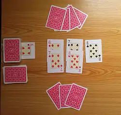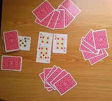 Entre principiantes o cinco o seis jugadores se suele utilizar la baraja al completo.[3] Cuando existe alguno de los dos últimos casos algunos jugadores prefieren repartir siete cartas.[1]
