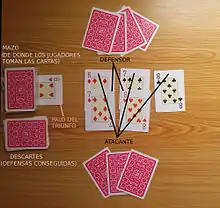 - las cartas de triunfo solo pueden ser defendidas por una carta de triunfo de mayor valor.